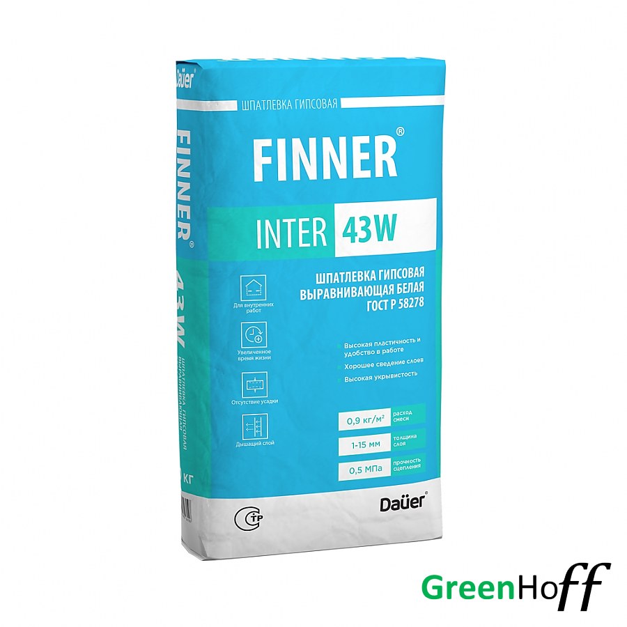Шпатлевка гипсовая выравнивающая белая FINNER® INTER 43 W, DAUER